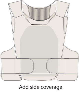 The base layer vest can scale from an ultra light soft armor concealable to full tactical vest. Hard armor plates and soft armor protective additions are available for shoulders, biceps and groin protection.